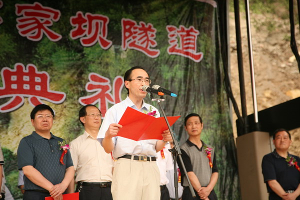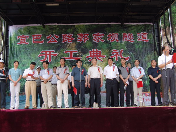 开工仪式由中共秭归县委副书记肖高沛主持。秭归县交通局局长余志训介绍项目情况。县委副书记、代县长罗联峰代表县委、县人大、县政府、县政协致辞。宜昌市公路管理局局长丁庆荣讲话,他希望业主单位加强对郭家坝隧道工程建设工作的管理和领导,千方百计帮助参建单位解决实际困难,解除参建的后顾之忧。希望施工单位牢固树立“安全第一、质量第一”的观念,精细管理,顽强拼搏,讲安全、重质量、高标准、严要求,全力推进郭家坝隧道建设,确保按时按质完成任务。同时希望设计单位搞好跟踪服务、动态设计,监理单位秉公办事,强化责任意识,以求真的态度和务实的精神开展监理工作,为郭家坝隧道建设保驾护航。