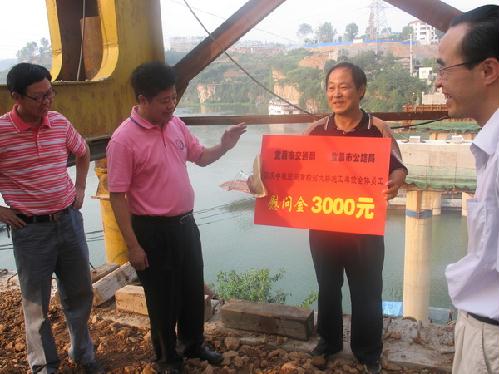 9月29日,市交通局局长马宏彦、总工周昌栋,市公路局局长丁庆荣、副局长鲍玉洪、局长助理王亮一行专程前往黄柏河大桥,看望慰问施工人员,并送去3000元慰问金。