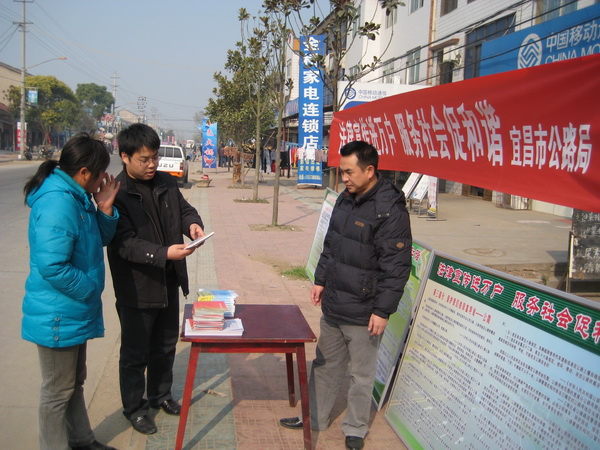 为深入贯彻落实科学发展观,全面推进农村依法治理,加强农村基层民主法治建设,提高农民法律意识,促进和谐共建,广泛宣传宪法、法律和保护公路的相关知识,11月24日,市公路局党委副书记张建华同志带领局党办、局路政支队一行,前往当阳市两河镇群丰村开展法律宣传活动。