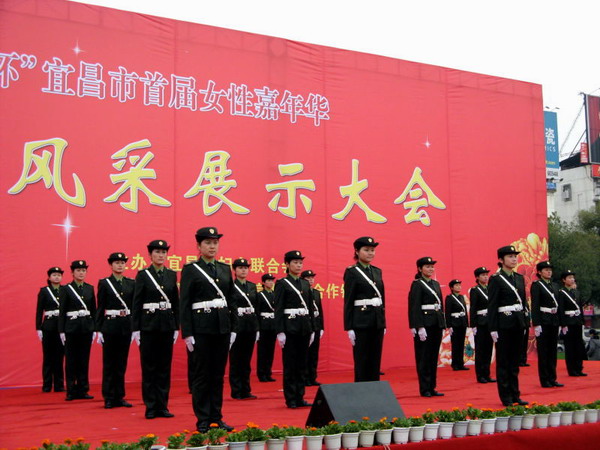 3月6日上午,宜昌市公路局女子路政员方队代表宜昌市交通系统参加了全市“女性嘉年华”风采展示,30名英姿飒爽的女子路政员在口令的统一指挥下,一丝不苟地做着各种规定动作,行进、敬礼、交通手势指挥标准规范、整齐划一,博得了台下观众阵阵掌声。以最佳表现征服了观众,获得 “最佳风采奖”的荣誉,充分展示了路政人员的良好形象和素质。她们用实际行动告诉人们,在金色的公路上,不仅有着男路政员的贡献,也洒下了女路政员的汗水,承载着巾帼路政的荣誉。