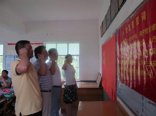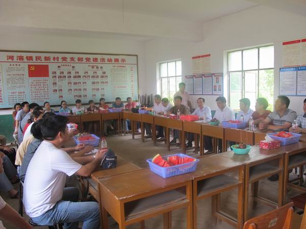 当天,市公路局领导班子成员、机关党员同河溶镇和民新村领导共50余人聚集在村委会活动室,市公路局局长、党委副书记丁庆荣同志首先介绍了此次活动的内容、目的、意义,以及市公路局在宜昌社会经济发展、新农村建设中的职能、义务,通报了近年来宜昌公路建设发展情况。河溶镇毛副书记、民新村刘书记分别介绍了新农村建设规划和工作进展情况。在欢快热烈的氛围中双方交流思想,探讨新农村建设的思路和举措,为创建明星村加油鼓劲,市局机关3名党员还在村党支部进行了入党宣誓。