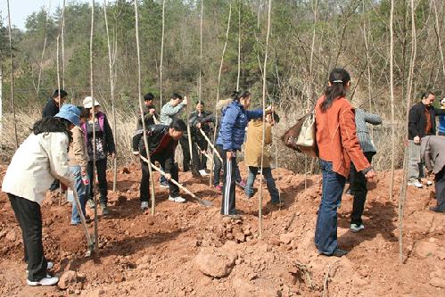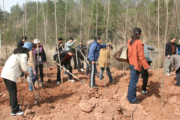 植树现场,100多名干部职工齐心协力,相互配合,在1个多小时时间内栽植树木400余株。不仅植下一片新绿,也为完善“一江两山”绿化通道建设,创建国家森林城市贡献了一份力量。
