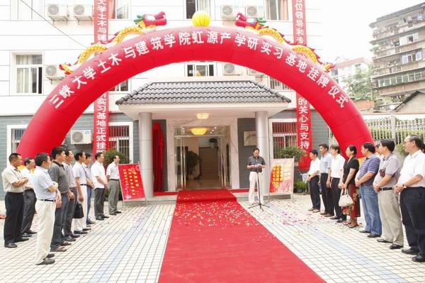 揭牌仪式上,三峡大学土建学院特聘请沈成武和周昌栋为兼职教授。(虹源公司 贾耘)