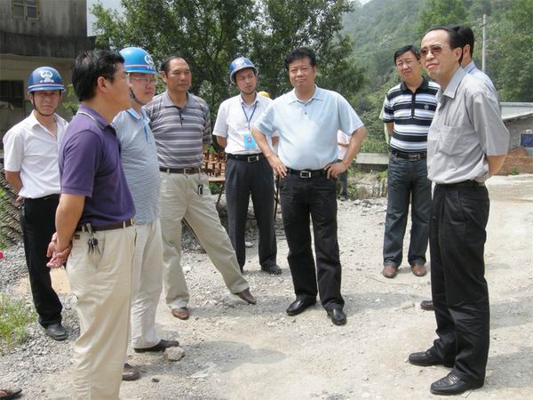 (马局长一行在陆渔一级公路熊渡电站特大桥施工现场)