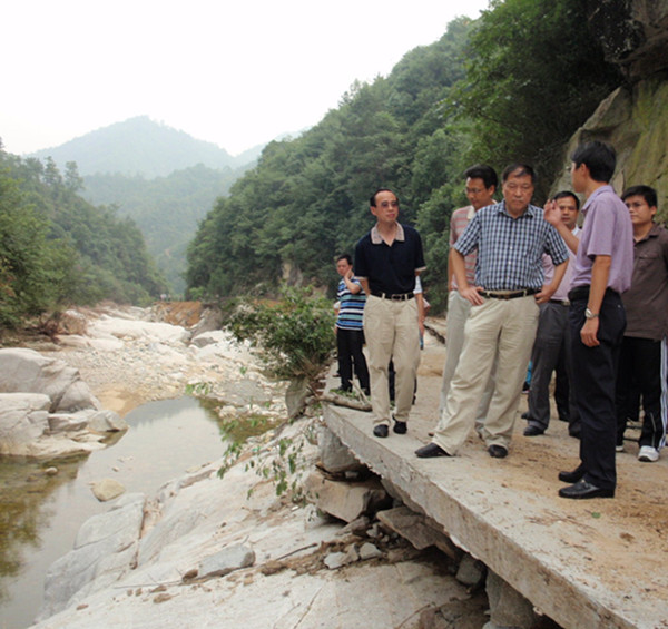 视察我市水毁情况及灾后重建工作