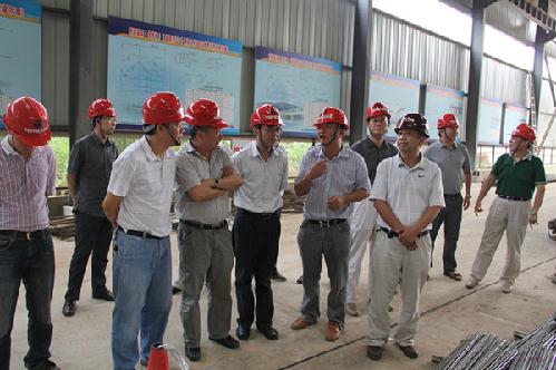 在考察中丁局长一行沿线查看了保宜高速宜昌段第七合同段标准化钢筋加工场、项目部,第五合同段小构预制场、钢筋加工场,第四合同段梁板预制场、土门垭大桥施工现场,以及中心试验室。在保宜高速指挥部进行了座谈,保宜高速建设指挥部指挥长详细介绍了保宜高速在设计标准化,三站一场建设标准化,试验检测标准化,评价体系标准化以及项目科学规范管理等方面的经验和做法。