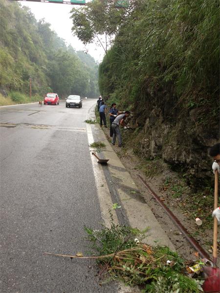 近期,由于天气恶劣,暴雨频发,日常养护受人员限制,不能全力跟上,影响了公路路容路貌整洁美观。为确保过往车辆行车安全舒适,分局从立足服务促文明,抓好细节树形象的角度出发,由局长舒华容同志亲自带队,组织全体干部职工捎带镰刀、铁锹、扫把等工具冒雨上路进行义务劳动,对管养的宜巴路全面清理。