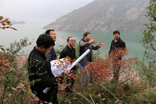专家组一行渡江涉水、攀爬悬崖峭壁,对大桥重要部位、白家包滑坡及接线线路进行了实地踏勘。在200多米高的峭崖边,专家们仔细察看了香溪长江大桥拱座及地质情况,认真听取了勘察、设计单位对大桥选址的情况介绍,并分析了大桥拱座地质成因及走向。在白家包滑坡处,专家们对滑坡的范围、深度、体积及路线经过滑坡体的可行性及处置方案进行了认真分析研究。