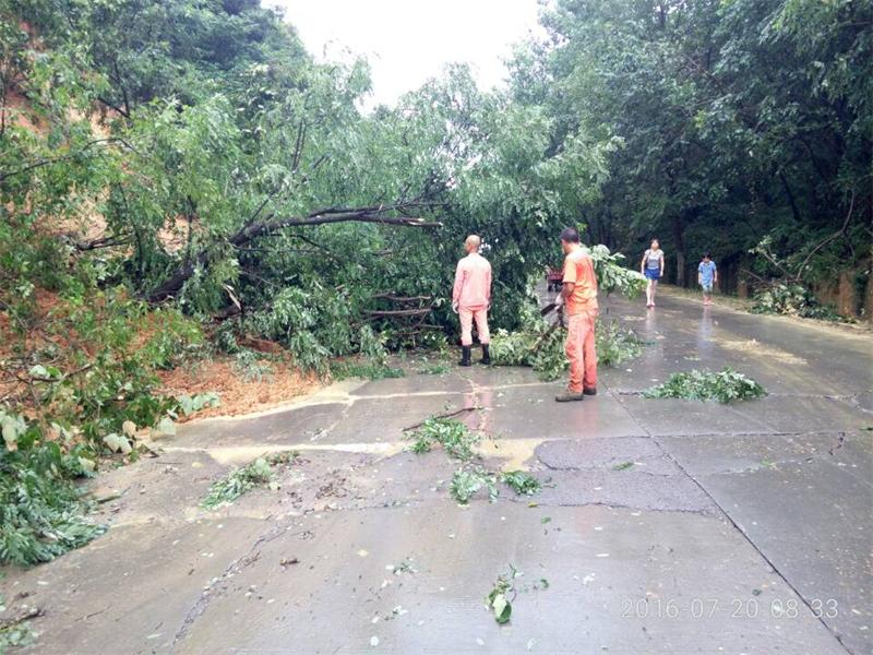 据统计,从7:10分开始抢险,累计移除树障30余颗,清除塌方2000立方米,9时整道路基本恢复通车。白洋新城至信用社路段滑坡经紧急疏通,上午单边放行,中午12点全线贯通。紧接着,养护工人使用登高车对塌方边坡倾斜树木进行清除,消除安全隐患,并对路面进行了冲洗。