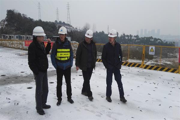 镜头1:四日晨8:23,温度:-1,项目总监黄家标一大早召集参建单位人员,查看三峡大学段高架桥。