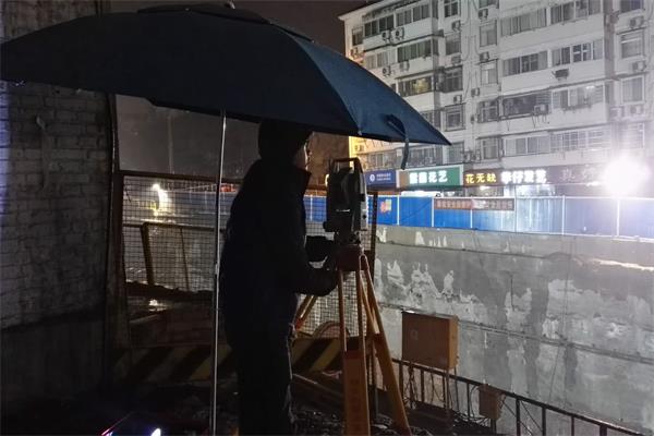 镜头2:4日凌晨1:02,气温:-6℃,监测人员坚守岗位,对地下通道深基坑进行24小时监测,及时向参建各方汇报监测情况。