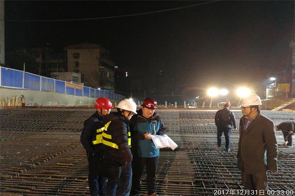 1月4日清晨,在城区市政项目西陵二路快速路施工现场,项目总监黄家标召集参建单位人员,查看三峡大学段高架桥T梁架设情况。接着又邀请项目顾问同到西陵二路汕头路检查高架桥桥面铺装质量——为确保工程质量安全受控,该项目地下通道深基坑支护结构进行24小时不间断监测,监测人员在零下6摄氏度的严寒天气下彻夜坚守,实时向参建各方汇报监测情况。