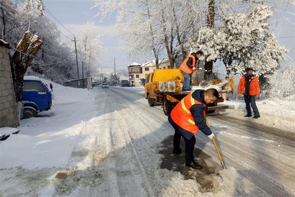 长阳公路部门继续清除路面积雪,确保安全,保障畅通。8日共投入融雪剂21吨,养护车18台/班,人员56人/次。S255兴五线滴水岩至田家坪段经过连日来的清理,目前已解除封闭,恢复通行。同时加强路面巡查。在国省干线重点路段加派管养人员,不间断巡查,发现路面积雪严重和道路结冰,立即进行清除,并设置防滑警示标志,在背阴山路、陡坡、急弯险道等处增设警示标志,放置沙石、融雪剂等防滑物资。枝江公路局应急保畅领导小组坚持每天7点前全员上岗,实行局领导包保片区责任制,分G318东西片区、S256片区合理调度机械、车辆和物资进行除雪、除冰,抛洒防滑沙和工业盐。局长龚万喜动员局机关全体干部职工上路,吴昊、张祖喜等同志带病坚持在一线作业,发扬党员先锋模范带头优良作风。全局上下凝聚一股合力,众志成城,国省干线全线基本通行顺畅。