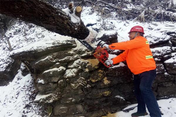 碑坳——318国道长阳贺家坪段的制高点,海拔1320米,平均积雪深度30厘米。沿途,断落的树枝横卧满地,厚雪堆压的树冠弯垂路上,随时可能轰然倒塌……然而,25日凌晨天刚亮,一队橙红的身影就出现在了路上,队伍最前端的一个身影,蹒跚而坚定,这是榔坪公路管理站站长刘玉龙率领的养护工。他们踏着一尺多厚的冰雪巡路,分批轮换,砍枝、清障、破冰、铲雪、帮助受困车辆排除险情。“你的主动脉夹层之前做过支架手术,今早又复发,刚刚服过药,还是赶紧回家休息吧”,同事们关切地劝着刘玉龙。“我们这算是宜昌最冷了!雪没停,路没通,我睡不着”,刘玉龙的脚步没有丝毫停顿。呼啸的寒风夹杂着雪片,打在脸上,灌进脖子里,和着被汗水湿透的内衣,紧紧地贴在背上,而双手早已冻僵。就这样,经过刘玉龙和工友们连续3天2夜坚守一线破冰除雪,318国道全线畅通。