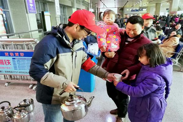 1月26日下午,宜昌火车东站出现了一群火红的“小红帽”,他们是宜昌交通运输系统的志愿者,其中有13人来自市公路部门。他们在熙熙攘攘的候车大厅往来奔忙,将一碗碗热气腾腾的姜糖水端给旅客们,让大家手满热情,口满香甜,腹满暖意,心满温馨地踏上旅途。当日,宜昌交通志愿者们共计送出880斤、4000余杯姜糖水,所有志愿者的步数都累计超过了一万步。