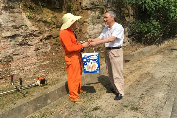 为确保一线养路职工平安度夏,7月25日,宜昌市交通运输局工会主任张德义一行来到S254省道谭艾线开展“送清凉”活动,为市公路管理局城区分局江南养护站的一线养护职工送来防暑降温慰问物资。