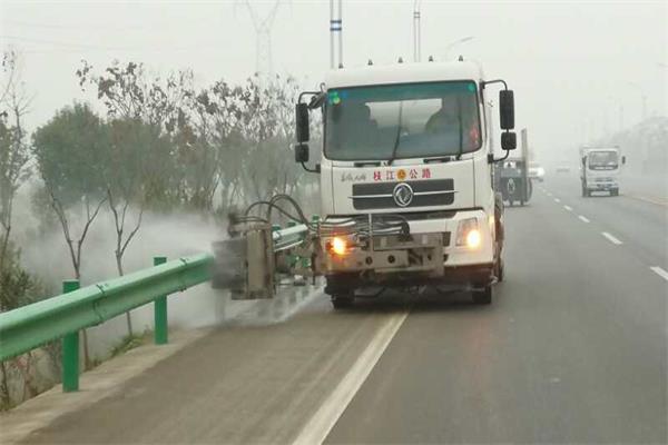 (枝江公路局组织节前清洗辖区两条一级路波形梁护栏及路面震荡标线。)