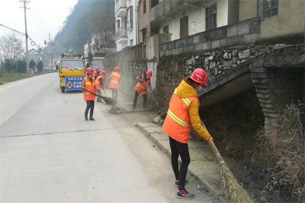 (长阳组织养护职工开展路面保洁、清理边沟,确保春运期间公路畅通。)