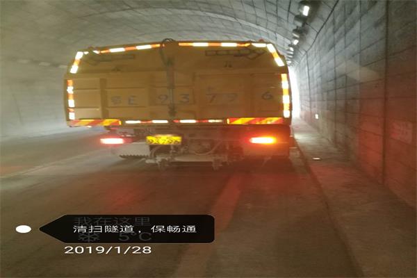 (秭归公路局出动专业道路清扫车,对G348隧道群进行集中清扫。)