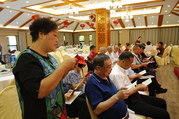 在同唱一首歌《我和我的祖国》澎湃激昂的歌声中,丰富的重阳暨庆祖国华诞“主题党日”结束了。老同志纷纷表示,感谢分局多年来的关心和关爱,让他们能及时了解到曾经奋斗过的战地在不断地改革发展,让他们能够老有所养、老有所医、老有所乐,今后他们会继续关注分局的各项发展,尽自己的一份力量为党的事业发展和祖国事业的腾飞发挥自己的余热。