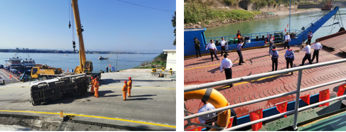 宜昌市公路管理局高新分局在白洋汽渡开展“船、岸联合”应急演练