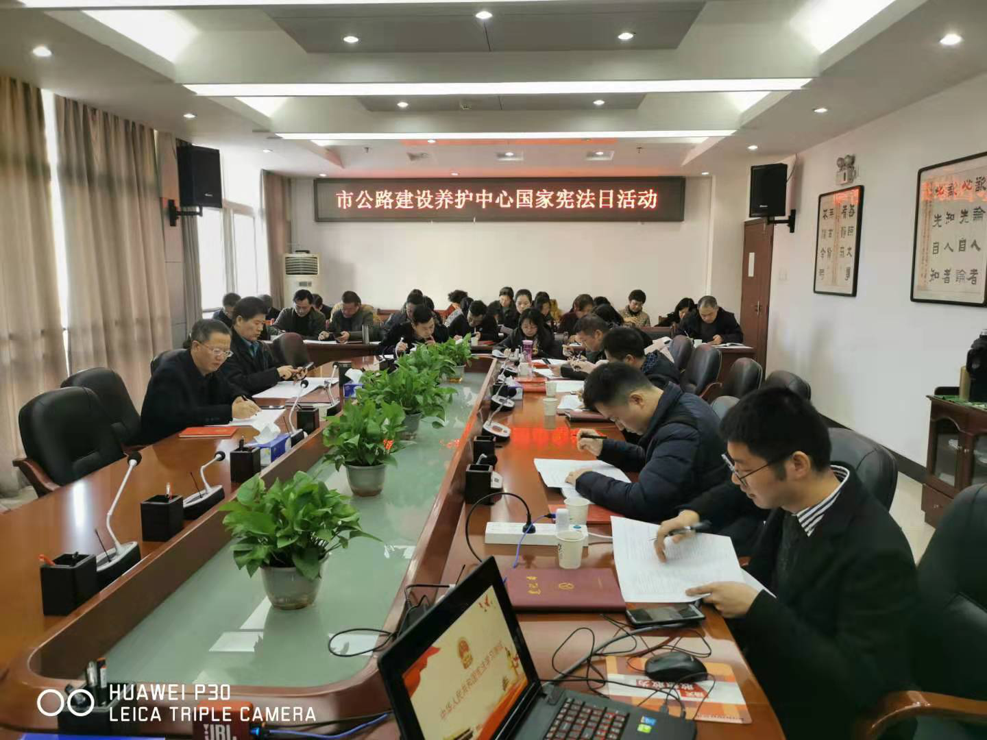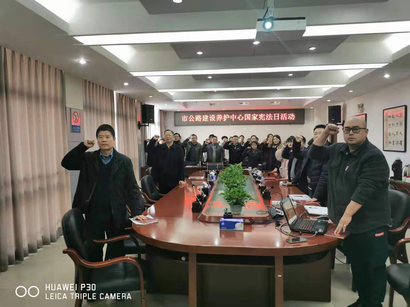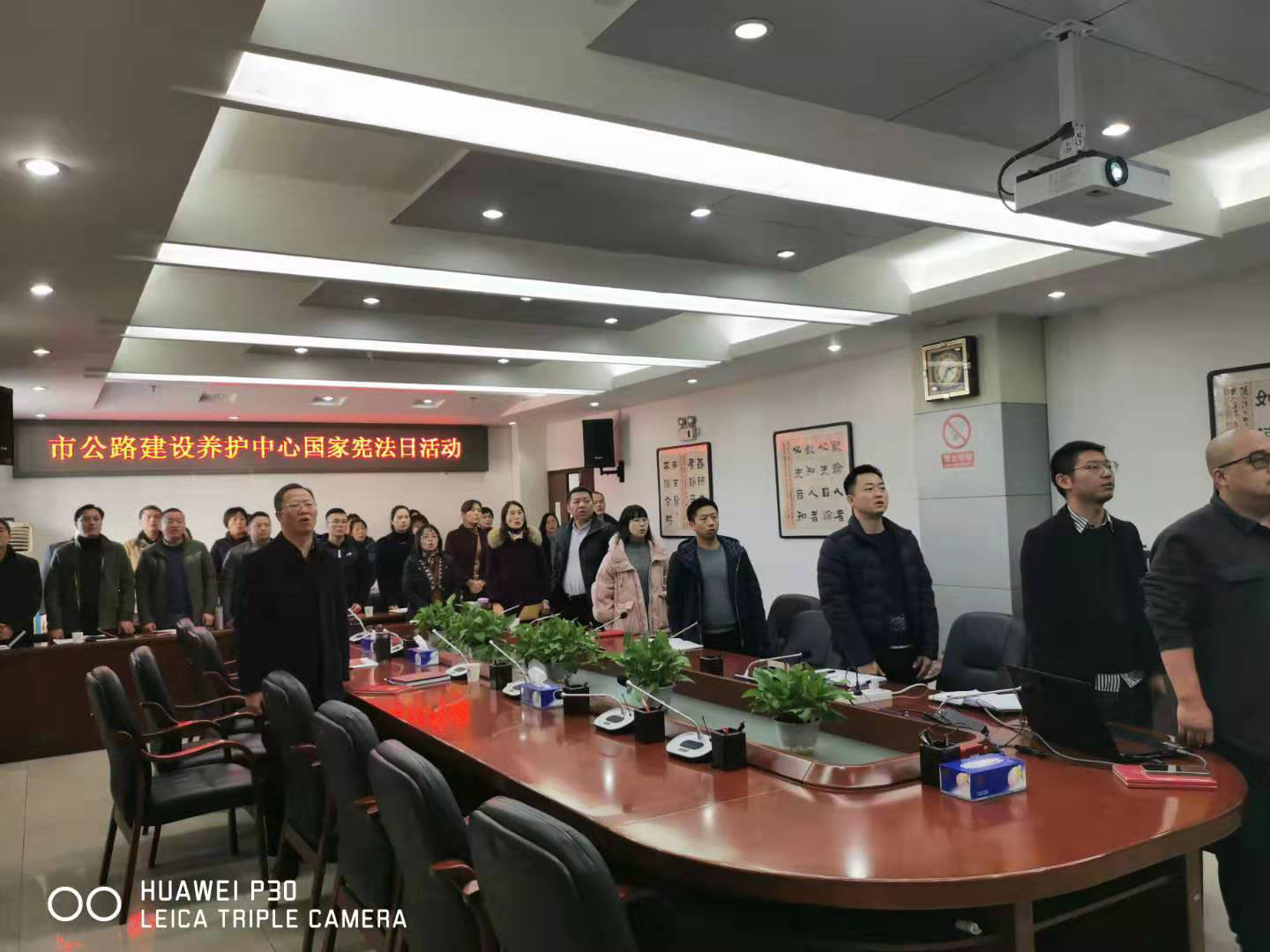 宪法宣誓是国家工作人员履行国家赋予职责的重要仪式。为激励和教育干部职工忠于宪法、遵守宪法、维护宪法,依法履职尽责,12月3日下午,市公路建设养护中心举行宪法宣誓仪式,2019年新入职工作人员依法进行宪法宣誓,中心全体干部职工参加宣誓仪式。