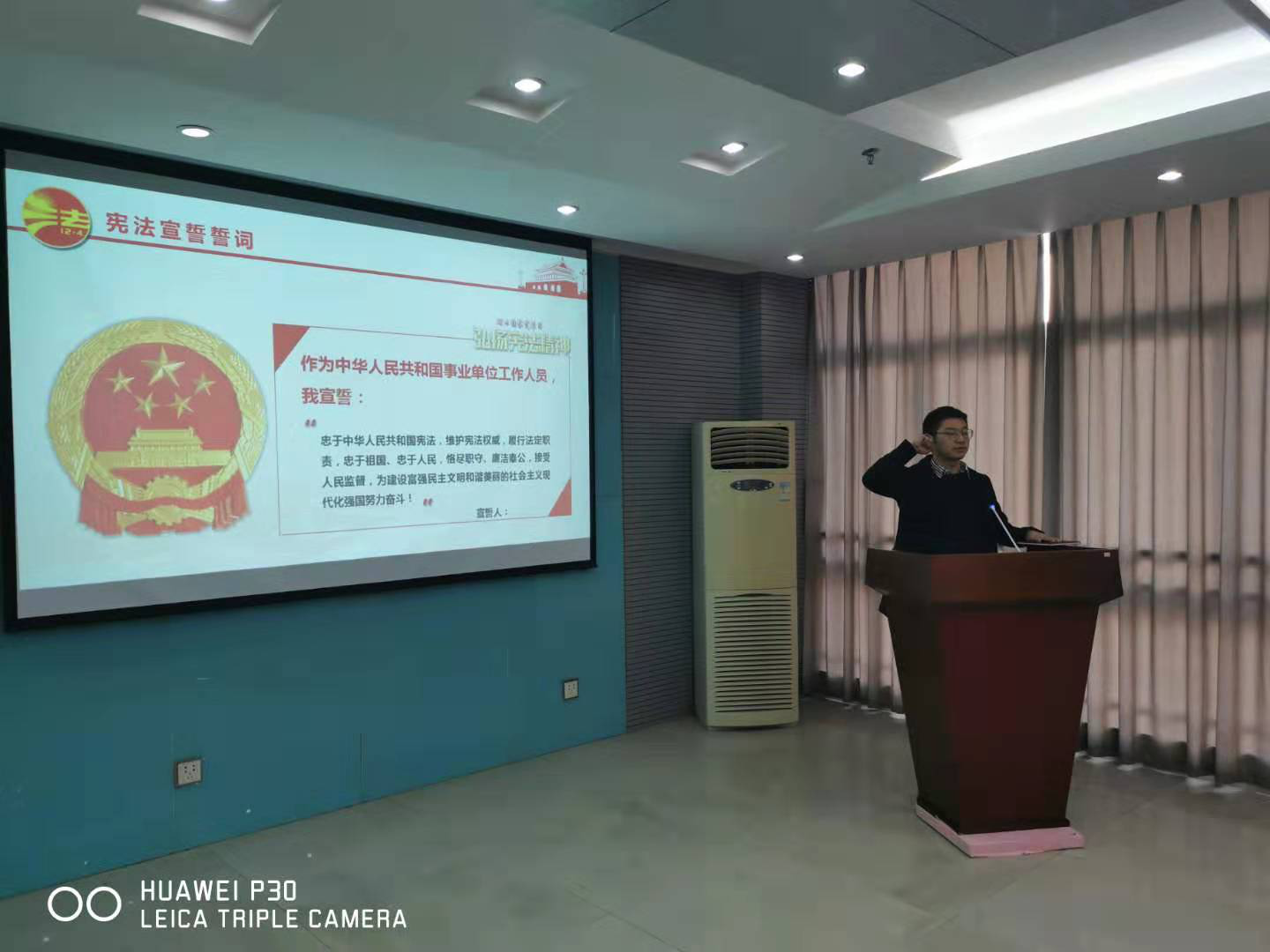 宣誓仪式后,中心还组织干部职工观看了《70年法治工作回眸》的纪录片,重温宪法,并认真作答《中华人民共和国宪法》知识测试。