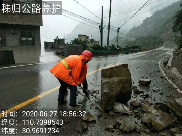 6月27日上午,宜昌迎来今年入汛、入梅以来,最强降水过程,城区多地累计降雨量达80mm,部分国省干线出现不同程度边坡垮塌、山体落石、路基塌陷。全市各地养护职工闻“汛”而动,加大上路巡查频次,加强路面保畅力度,清理路障、清除树枝、疏通排水,始终坚守在路上,保障人民群众平安出行。