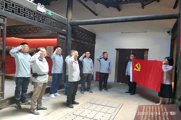 全体党员面对鲜红的党旗,庄严宣誓,缅怀革命先烈,重温战争岁月,实地接受党性和革命传统教育。