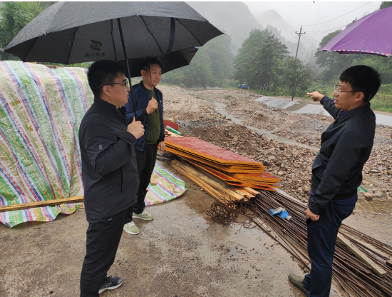 在文佛山林场通往居民安置点的涵洞冲毁现场,中心农路科雷富宏仔细查看了涵洞及两侧道路水毁情况,并详细了解了楠木溪村水毁抢修、保通等工作措施以及应急修复方案。