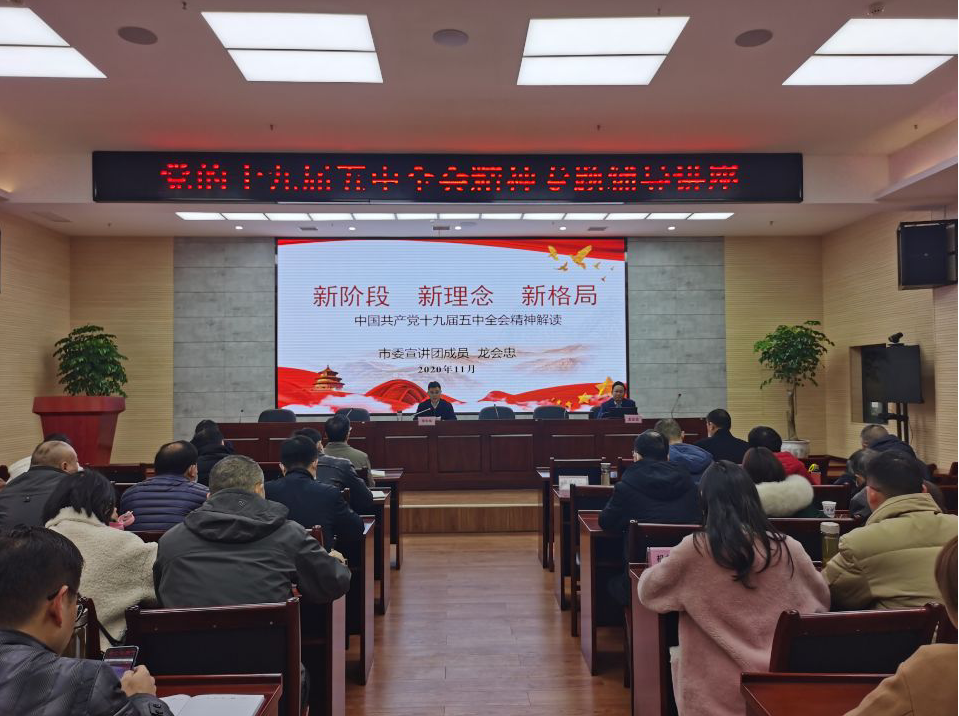 邀请专家宣讲学。举办市直公路系统学习宣传贯彻党的十九届五中全会精神宣讲会,邀请市委宣讲团成员、市社科联副主席龙会忠作宣讲报告,龙会忠从十九届五中全会基本情况、全会精神亮点解析以及贯彻落实全会精神需要把握的重点难点三个方面,为公路中心干部职工作了系统阐述和深刻讲解,宣讲会政治站位高、针对性指导性强,对公路中心深入学习宣传贯彻全会精神起到了重要推动作用。